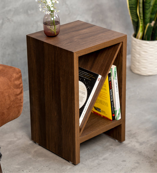 Walnut Hues Bevel Mica Side Table, Small Storage and Decor, End Table, Living and Bedroom Decor