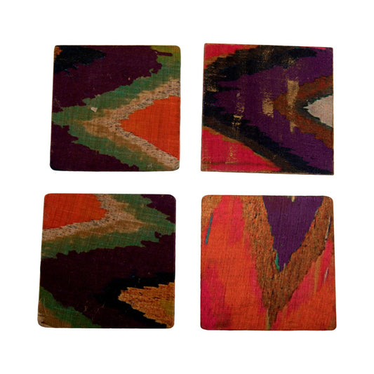 A Tiny Mistake Colourful Ikat Fabric Square Wooden Coasters (Set of 4), 9.5 x 9.5 x 0.5 cm