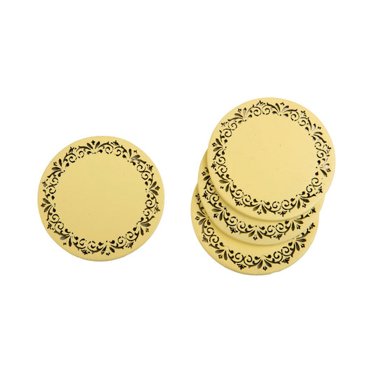 A Tiny Mistake Pastel Yellow Round Wooden Coasters (Set of 4), 7.5 x 7.5 x 0.5 cm