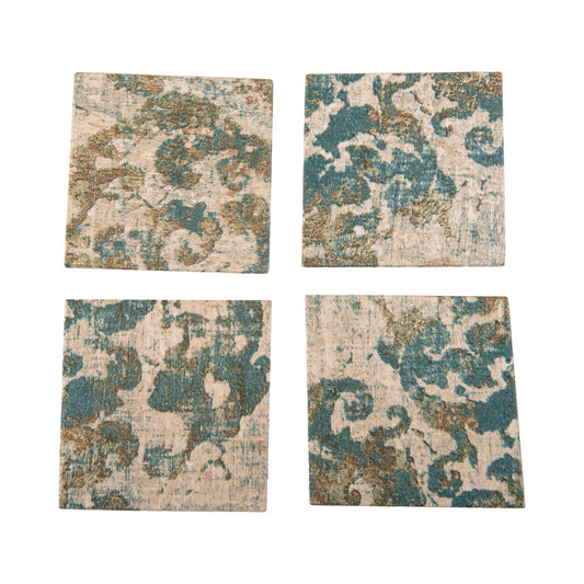 A Tiny Mistake Teal and Gold Floral Square Wooden Coasters (Set of 4), 9.5 x 9.5 x 0.5 cm