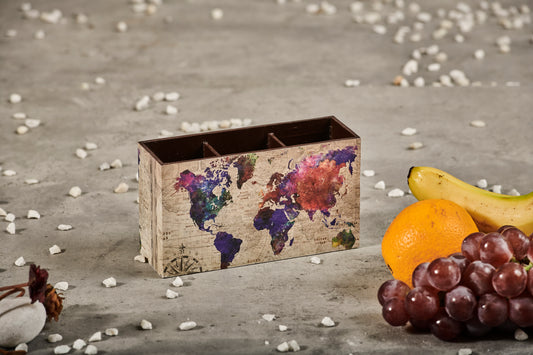 A Tiny Mistake Atlas Wooden Cutlery Holder, 18 x 10 x 6.5 cm