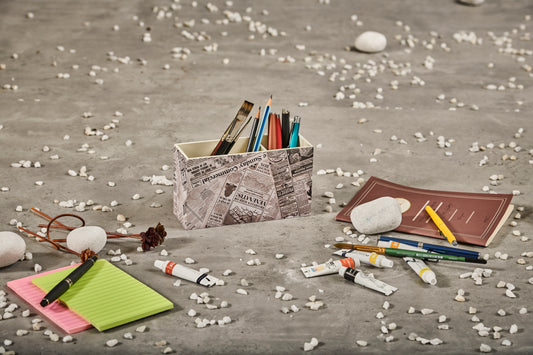 A Tiny Mistake Vintage Newspaper Wooden Cutlery Holder, 18 x 10 x 6.5 cm