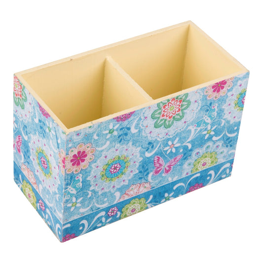 A Tiny Mistake Blue Base Spring Florals Wooden Cutlery Holder, 15 x 8 x 10 cm