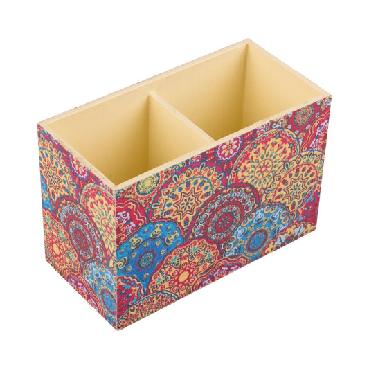 A Tiny Mistake Red Mandala Pattern Wooden Cutlery Holder, 15 x 8 x 10 cm