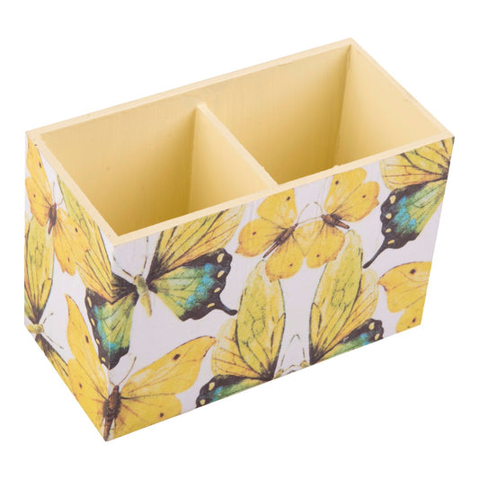 A Tiny Mistake Shaded Yellow Butterflies Print Wooden Cutlery Holder, 15 x 8 x 10 cm