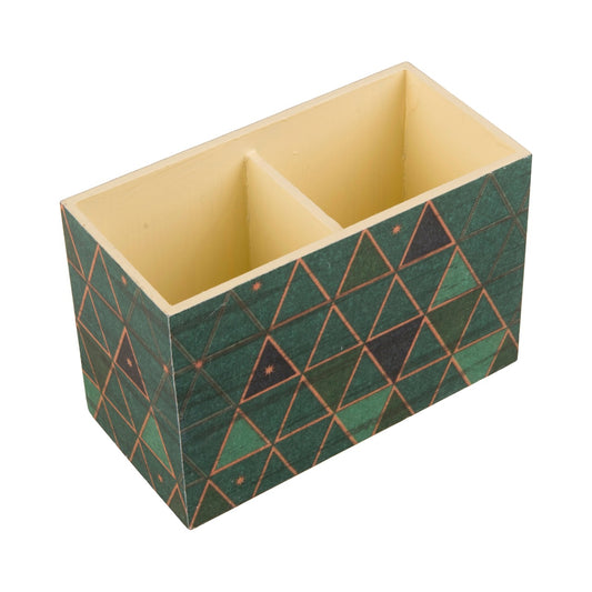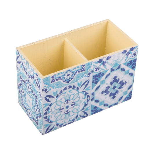 A Tiny Mistake Moroccan Tiles Finish Wooden Cutlery Holder, 15 x 8 x 10 cm