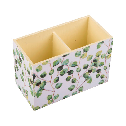 A Tiny Mistake Eucalyptus Round Leaf Pattern Wooden Cutlery Holder, 15 x 8 x 10 cm