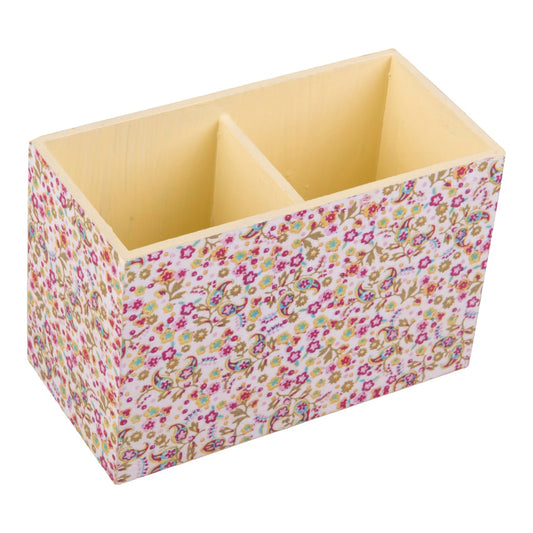 A Tiny Mistake Small Leaves & Tiny Roses Wooden Cutlery Holder, 15 x 8 x 10 cm