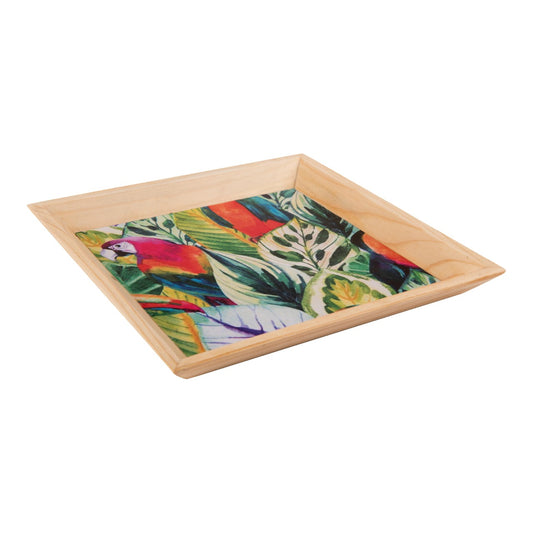A Tiny Mistake Parrots on Trees Pattern Wooden Serving Tray, 18cm x 18cm x 2cm