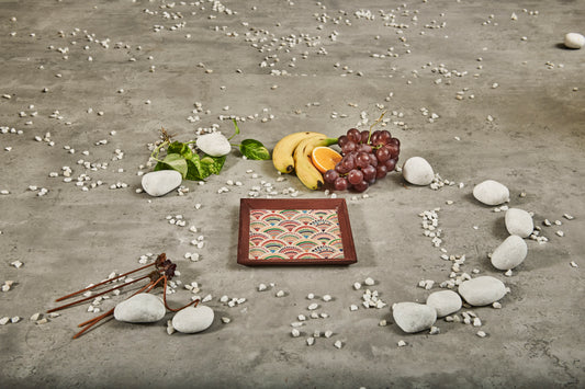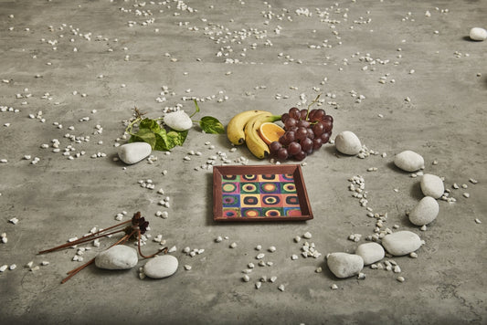 A Tiny Mistake Pankha Small Square Wooden Serving Tray, 18 x 18 x 2 cm