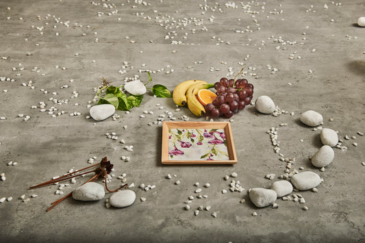 A Tiny Mistake Flora Small Square Wooden Serving Tray, 18 x 18 x 2 cm