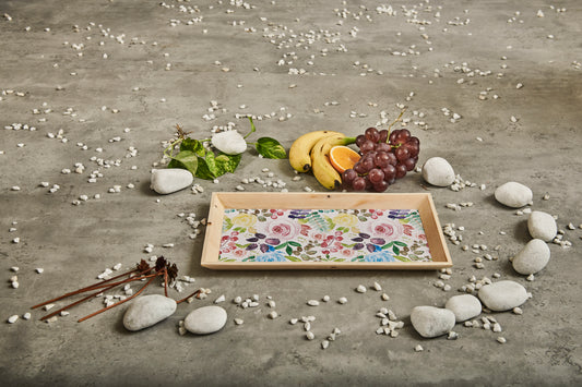 A Tiny Mistake Flora Rectangle Wooden Serving Tray, 35 x 20 x 2 cm