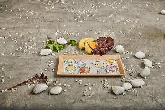 A Tiny Mistake Floral Caricature Trees Rectangle Wooden Serving Tray, 35 x 20 x 2 cm