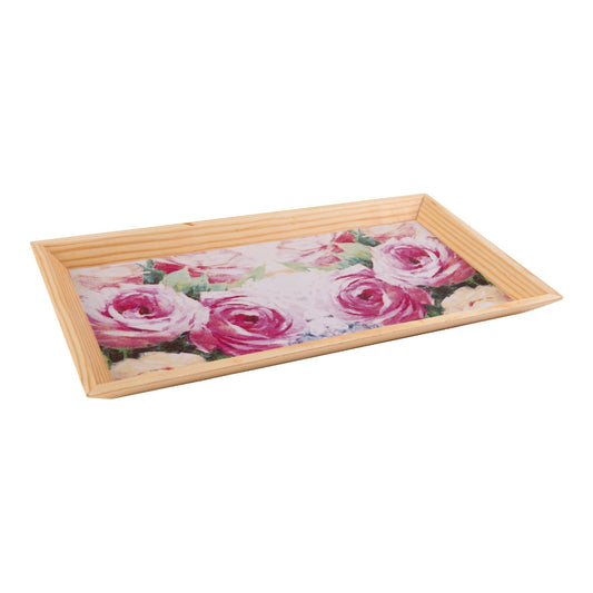 A Tiny Mistake Floral Watercolour Roses Rectangle Wooden Serving Tray, 35 x 20 x 2 cm