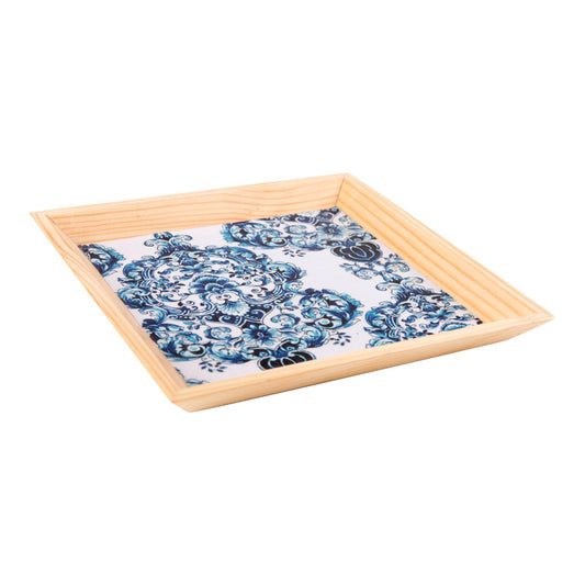 A Tiny Mistake Intricate Blue Motifs Small Square Wooden Serving Tray, 18 x 18 x 2 cm