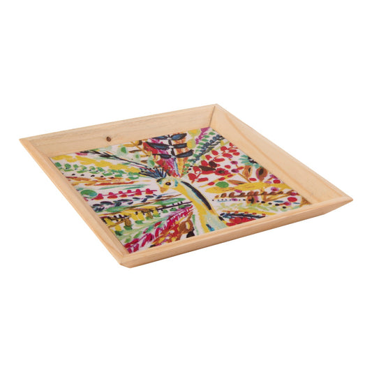 A Tiny Mistake World on a Plate Small Square Wooden Serving Tray, 18 x 18 x 2 cm