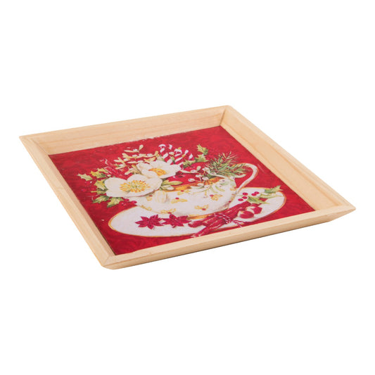 A Tiny Mistake Tea Cup Full of Flowers Small Square Wooden Serving Tray, 18 x 18 x 2 cm