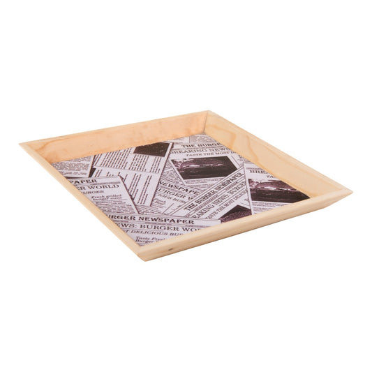 A Tiny Mistake Newspaper Print Small Square Wooden Serving Tray, 18 x 18 x 2 cm