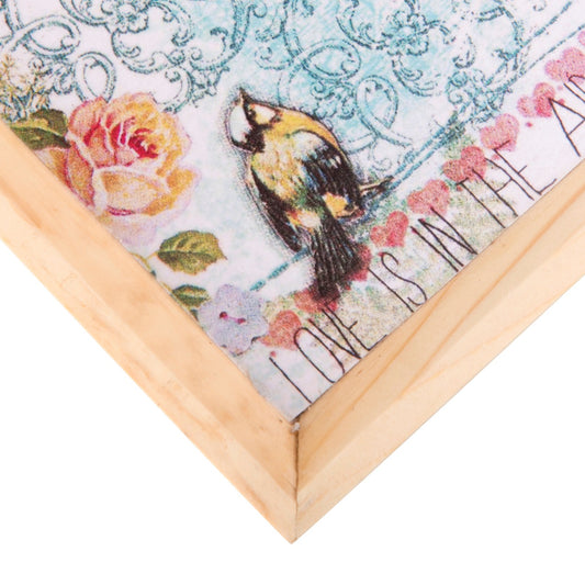 A Tiny Mistake Pastel Bird House Small Square Wooden Serving Tray, 18 x 18 x 2 cm