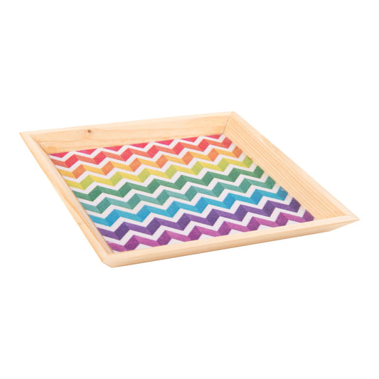 A Tiny Mistake Zig Zag Rainbow Print Small Square Wooden Serving Tray, 18 x 18 x 2 cm