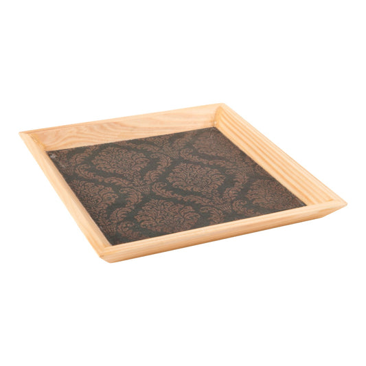A Tiny Mistake Olive Green & Gold Royal Motifs Pattern Small Square Wooden Serving Tray, 18 x 18 x 2 cm