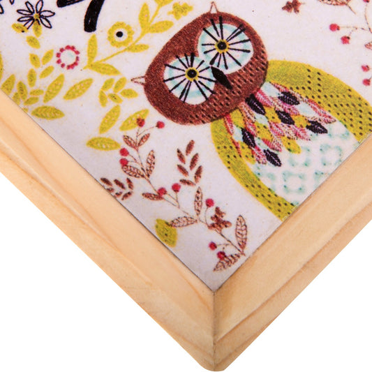 A Tiny Mistake Multicolour Owls Print Small Square Wooden Serving Tray, 18 x 18 x 2 cm