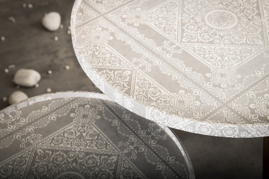 A Tiny Mistake Elegant White Motifs Trinity Side Table, End Table (Set of 2)