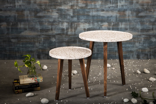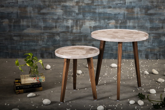 A Tiny Mistake Walnut Matt Finish Wooden Nesting Tables (Set of 2), Living Room Decor
