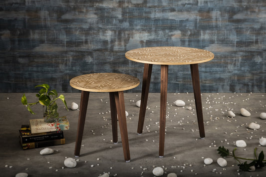 A Tiny Mistake Sunehri Wooden Nesting Tables (Set of 2), Living Room Decor