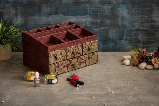 A Tiny Mistake Red and Gold Medium Make up Organiser, Vanity Box, Dressing Table Decor, Make Up Box