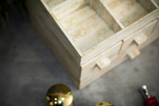 A Tiny Mistake Grey and White Distressed Finish Medium Make up Organiser, Vanity Box, Dressing Table Decor, Make Up Box