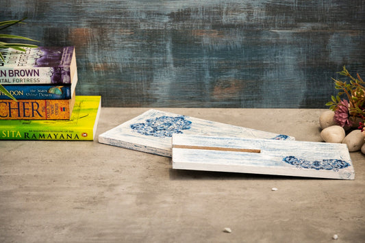 A Tiny Mistake Blue Motifs Wooden Night Stand Manager, Bedside Organiser, Night Table Organiser