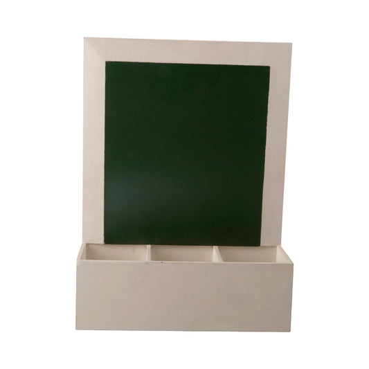 A Tiny Mistake Wooden Desk Organiser for Pens, Notes, Spectacles and Stationery with Chalk Board, White Wooden Organiser, Desk Accessories