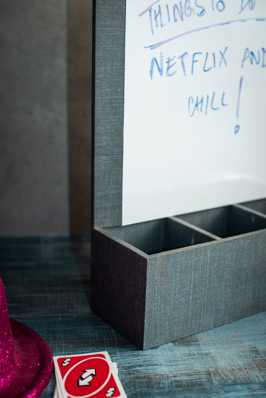 A Tiny Mistake Wooden Stationery Organiser with Whiteboard, Store your Pens, Stationery, Accessories, Sticky Notes all in one place, Can be hung also