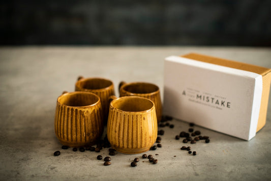 A Tiny Mistake Earthenware Mustard Round Ceramic Mugs, Set of 4, Coffee and Tea Mugs, 160 Ml Each