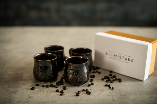 A Tiny Mistake Earthenware Metallic Round Ceramic Mugs, Set of 4, Coffee and Tea Mugs, 160 Ml Each