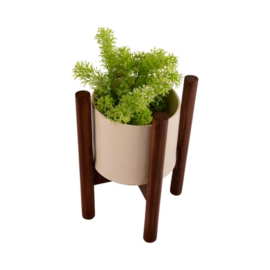 A Tiny Mistake Wooden Small Planter Natural Finish with White Ceramic Pot, Indoor Planter, For Real Plants (1 Piece)