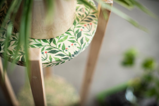 A Tiny Mistake Three Part Wooden Planter Stand Natural Finish with White Ceramic Pots