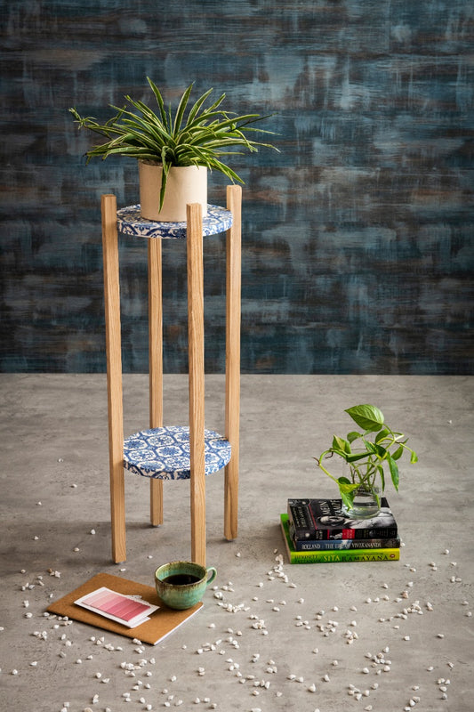 A Tiny Mistake Blue Tiles Finish Double Decker Decorative Stand