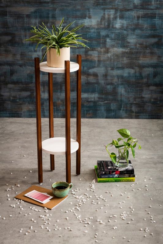 A Tiny Mistake Pine Wood Natural Finish Double Decker Decorative Stand