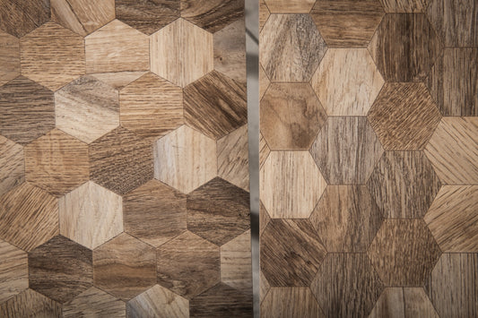 A Tiny Mistake Hexagon Patches Wooden Rectangle Nesting Tables (Set of 2), Living Room Decor