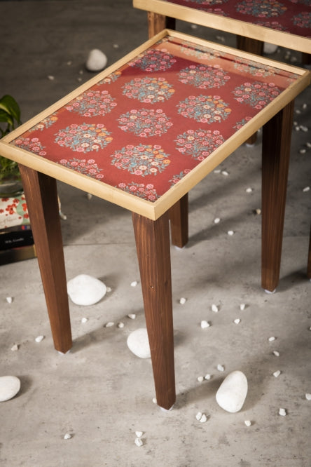 A Tiny Mistake Peach Floral Motifs Wooden Rectangle Nesting Tables (Set of 2), Living Room Decor