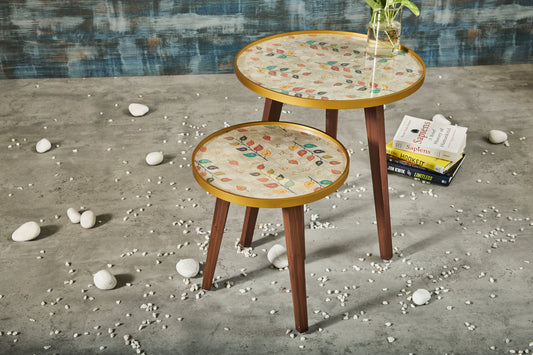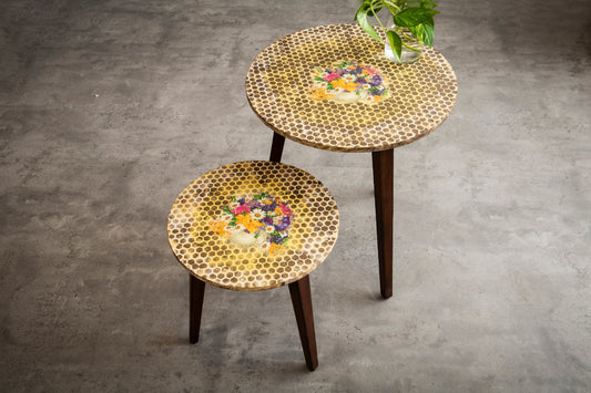A Tiny Mistake Gold Blossom Wooden Nesting Tables (Set of 2), Living Room Decor