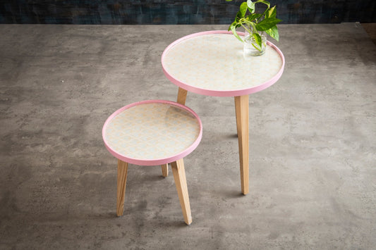 A Tiny Mistake Copper and Pink Hues Wooden Nesting Tables (Set of 2), Living Room Decor