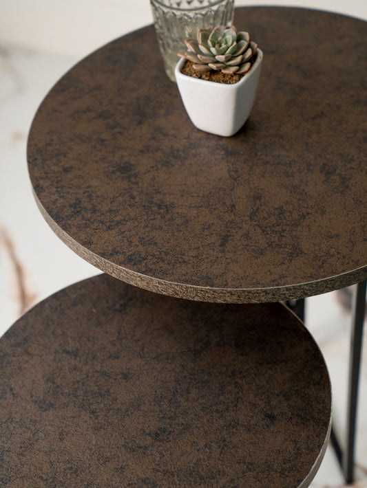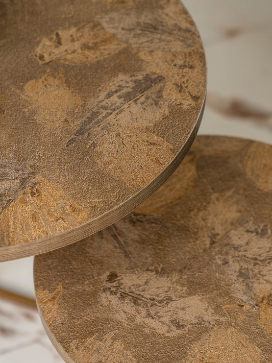 Transcendent Tinge Dark Gold Round Oblique Nesting Tables, Side Tables, Wooden Tables, Living Room Decor by A Tiny Mistake