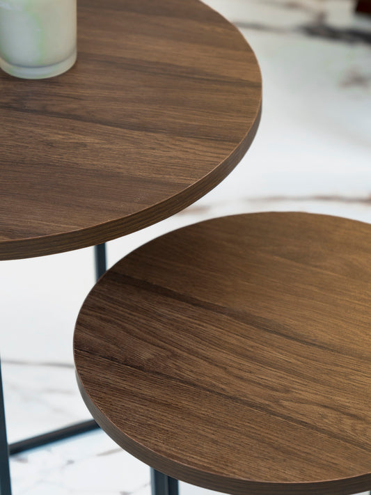 Walnut Hues Round Oblique Nesting Tables, Side Tables, Wooden Tables, Living Room Decor by A Tiny Mistake