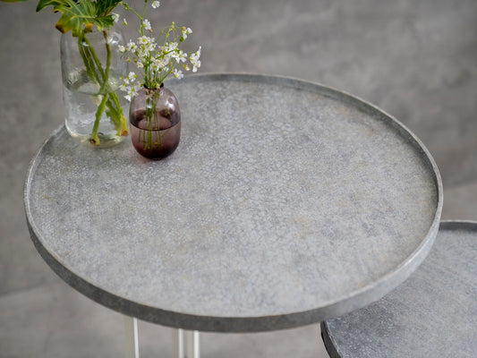 Transcendent Tinge Powder Blue Round Oblique Nesting Tables, Side Tables, Wooden Tables, Living Room Decor by A Tiny Mistake
