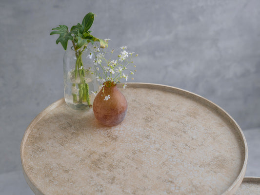 Transcendent Tinge Light Gold Round Oblique Nesting Tables, Side Tables, Wooden Tables, Living Room Decor by A Tiny Mistake