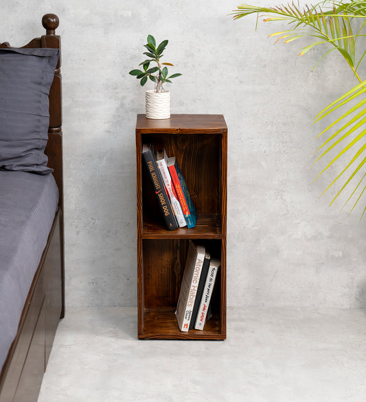 Walnut Tint Two Storey Bedside and Living Room Storage, Bookshelf, Decorative Stand