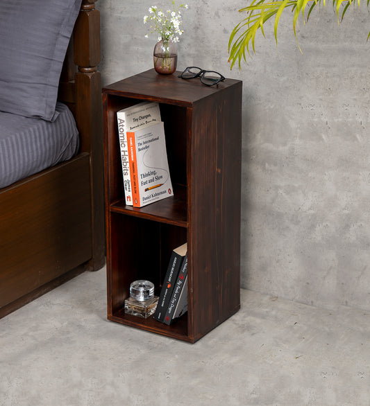 Teak Tint Two Storey Bedside and Living Room Storage, Bookshelf, Decorative Stand